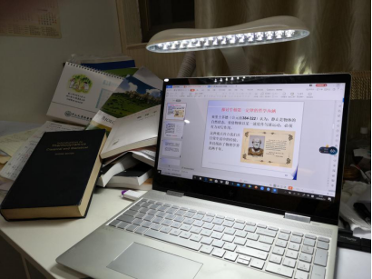 潘宝成教授正在教师宿舍备《医学物理学》课程