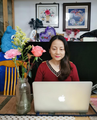 健康服务与管理专业主任林爱华副教授正在家中备《医学统计学》课程