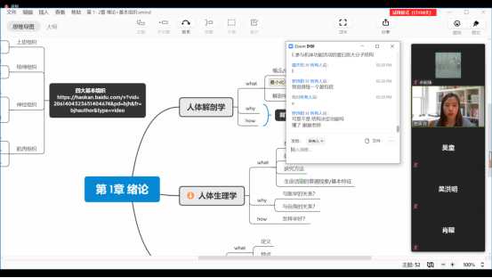 陈思娟老师的《基础医学概论上》课程,采用结合MOOC课前预习/课后复习+ZOOM直播研讨式授课。提前一周发放预习指南给学生,并完成中大新华人卫MOOC内容学习及课后练习;上课期间,利用ZOOM线上讲解精要点总结、补慕课内容及答疑学生问题;课后回到云班课进行每一周课后反馈和研讨,充分调动了学生参与课堂的积极性。