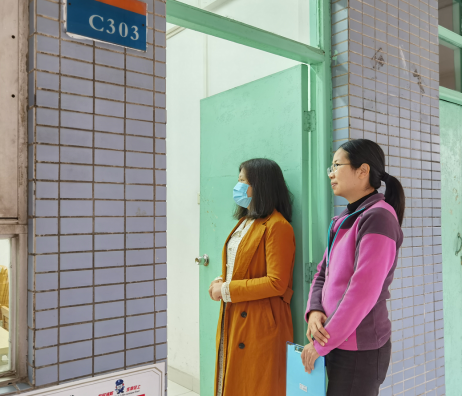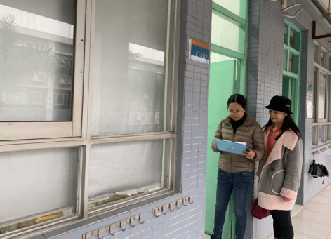 副院长梅碧琪(左)、党总支副书记马丽娟(右)查看课堂情况