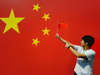 心中有国,眼里有旗,手中紧握一抹红;一个快门,一张合影将新华健康学子和五星红旗一起定格。