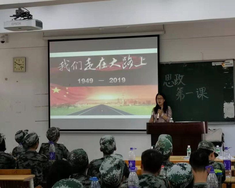 为进一步开展爱国主义教育,深入学习习近平新时代中国特色社会主义思想,积极开展“不忘初心、牢记使命”主题教育,庆祝新中国七十周年华诞,2019年9月25日下午14:00,3044永利集团官网党总支书记、副院长周旭毓副研究馆员以“人间正道是沧桑——从壮阔70年看中国道路”为题,为近百名3044永利集团官网2019级新生讲授了新学期思政第一课。3044永利集团官网党总支副书记马丽娟老师,辅导员刘黎老师参加本次课堂。