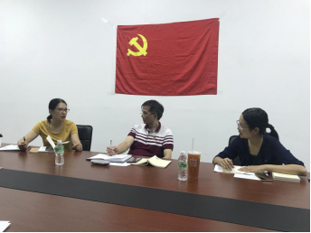 首先,支部书记刘黎汇报了支部师生党员在“不忘初心、牢记使命”主题教育系列活动中的学习情况,分享了各个支部党员同志的学习心得,以及接下来工作计划和学习安排。接着,党总支周旭毓书记从教师的初心出发,交流对“不忘初心、牢记使命”的认识,她提出政治站位要高,要认真学习“不忘初心、牢记使命”相关的内容,结合实际工作,带着问题进行调研,提高工作水平,更有针对性的发现问题,解决问题,落实成效;总支和支委会要充分发挥党支部的战斗堡垒作用,抓好学风建设,抓好作风建设,努力在新时代创造更大的作为。