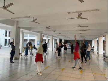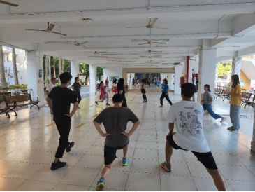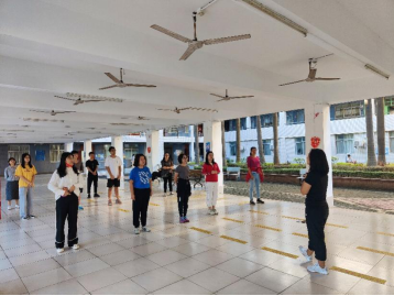 周心怡博士首先带领在场的师生进行一系列热身活动,使身体可以得到充分的拉伸,舒展。为把每一个动作都做到细致专业,周博士通过亲身示范,纠正错误动作,一遍遍向师生们讲解动作的细节以及注意事项。此外,周博士还设计了一些有利于拉近师生间的热身小游戏,不仅达到了热身效果,还活跃了场上的气氛。