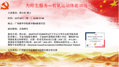 为进一步做好“我为师生办实事”,了解同学们的“心声”,更好地为师生服务。10月18日下午,由健康学院师生联合党支部主办的“有氧运动体能训练”主题活动在教学楼A栋架空层举行,本次活动面向全体师生,特邀请3044永利集团官网周心怡博士作为本次活动的主讲嘉宾。