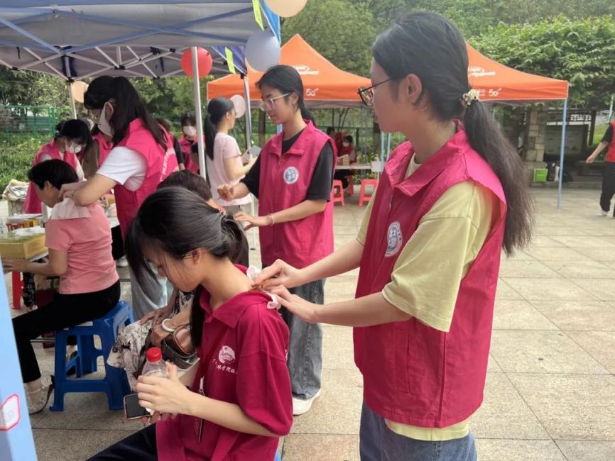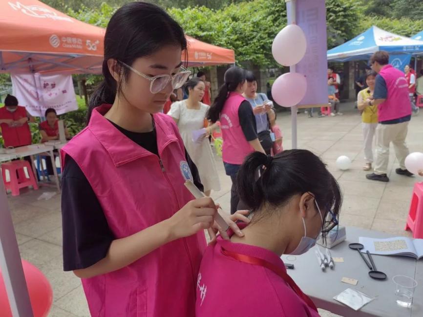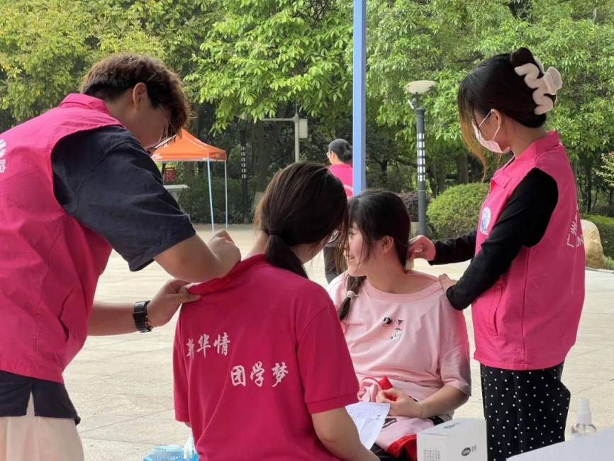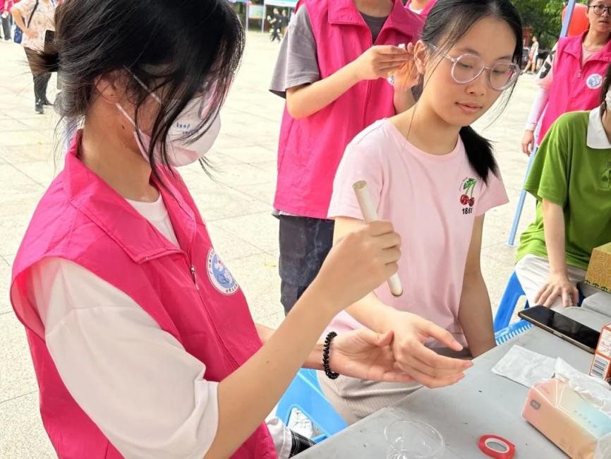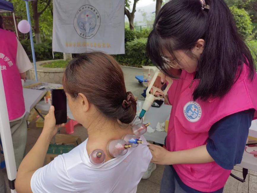 前来我们摊位接受艾灸、拔罐和刮痧等健康服务的大叔大姨有很多,当然也有不少小朋友来凌霄摊位进行了视力检测。凤凰台摆满了各学院志愿队的摊位,大家都很热情地为民众服务,这次活动让我收获了很多,若以后还有这样的活动,我也会积极报名参加。