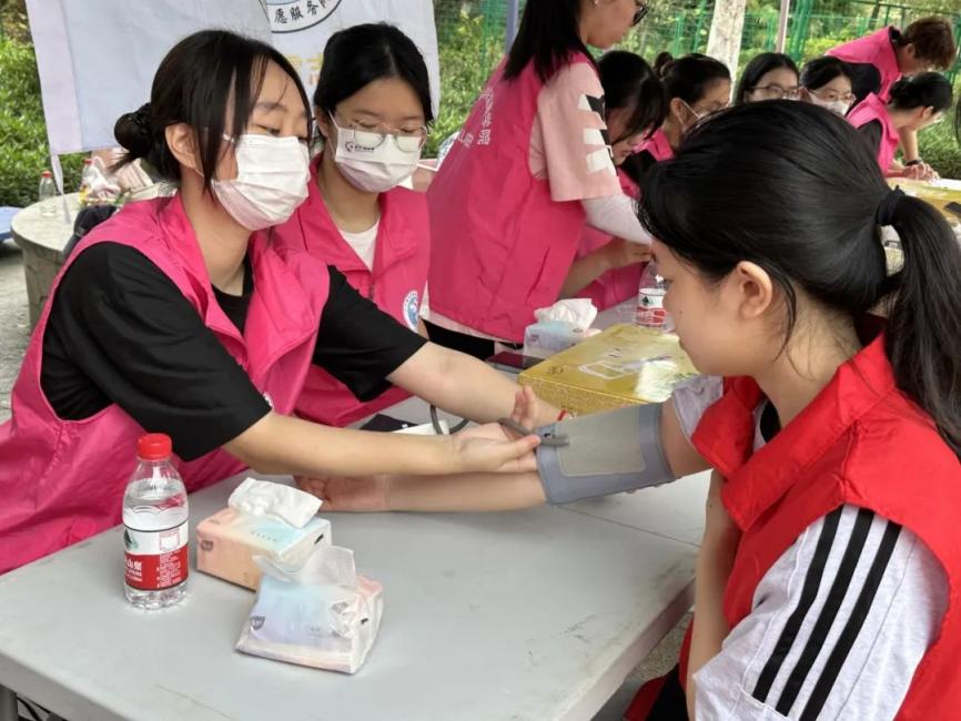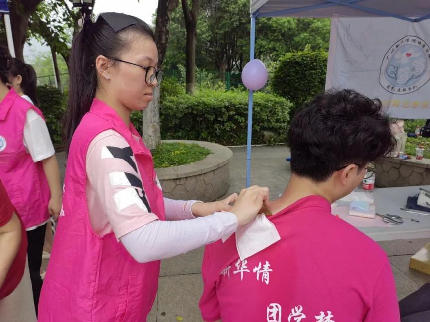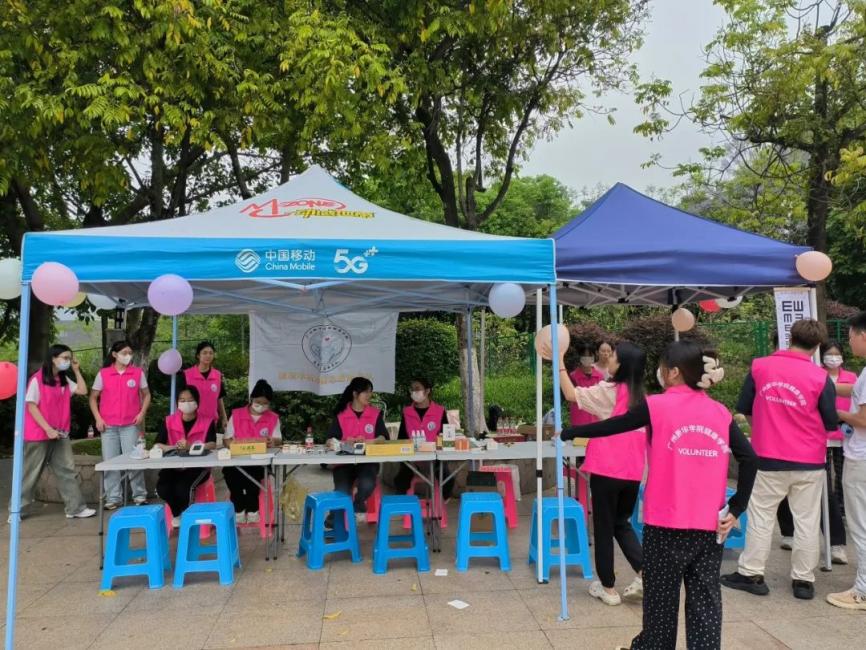 在健康知识不断普及的当今社会,人们愈来愈重视健康问题,健康服务活动应运而生,并为保障人民健康的事业注入了源源不断的动力。4月27日上午8点-12点,3044永利集团官网凌霄志愿服务队(以下简称“凌霄”)与广州校区八个志愿单位在火炉山森林公园开展健康服务活动。本次健康服务活动,结合本学院健康服务与管理以及眼视光学专业特色,为社区群众提供艾灸、拔罐、刮痧和测血压等健康体验项目,以及视力检查、色盲检查、眼球转动检查、角膜映光检查等眼部基础检查。